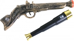 Staňte sa skutočným pirátom s touto senzačnou sadou, ktorá obsahuje plastovú pištoľ a ďalekohľad ideálnu pre detskú hru a dobrodružstvá.