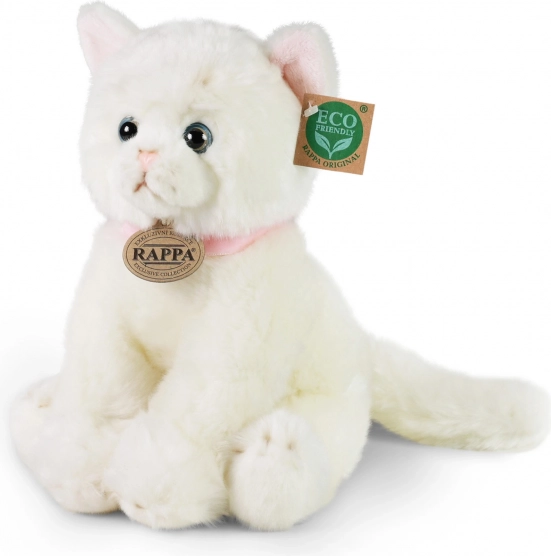 Predstavujeme vám čarovnú plyšovú mačku značky RAPPA, ktorá je vyrobená s dôrazom na detail a šetrnosť k prírode. Táto biela mačka je vybavená ružovým obojkom, ktorý zdôrazňuje jej prirodzenosť a hravosť.