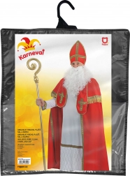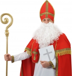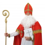 - Mikulášska čiapka, biele rúcho, červený plášť s golierom, šerpa s krížom