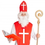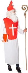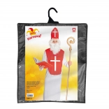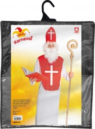 Tento mikulášsky kostým pre dospelých tvorí dlhé biele rúcho (cca 145 cm od ramien) a červená náprsenka s výrazným bielym krížom. Súčasťou je aj čiapka so zapínaním na suchý zips pre rýchle a bezpečné upevnenie. Vďaka univerzálnemu strihu sa kostým pohodlne nosí a ľahko vrství.