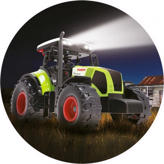Traktor je vybavený tlačidlami, ktoré po stlačení vydávajú realistické zvuky a svetelné efekty, pridávajúce skutočný pocit farmárskej práce.
