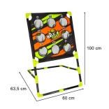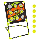 Čitateľne označené skóre 5, 10 a 20 bodov podporuje férové súperenie a motivuje k postupnému zlepšovaniu. Šesť perforovaných loptičiek s priemerom cca 7 cm je bezpečných a dobre sa drží – ideálne na nácvik techniky, rýchlosti aj sily hodu.