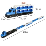 Kamión ponúka dvojnásobnú porciu zábavy: ako autotransportér dovezie autíčka na miesto pretekov a jedným pohybom sa zmení na autodráhu s dĺžkou 210 cm. Integrovaný vystreľovač vyšle vozidlá na trať bleskovou rýchlosťou, zatiaľ čo svetelné a zvukové efekty dodajú pretekom realistickú atmosféru. Odolné plastové vyhotovenie je ideálne na každodenné hranie.