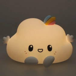 Táto detská nočná lampička v podobe usmiateho obláčika vnesie do detskej izby pokoj a pohodu. Mäkučký silikón je príjemný na dotyk a bezpečný pre deti, zatiaľ čo jemné svetlo pomáha prekonať strach z tmy a podporuje pokojné zaspávanie.