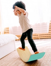 Univerzálna balančná doska LULILO AJLO s protišmykovou plstou v elegantnej tyrkysovej farbe podporuje rozvoj rovnováhy, koordinačných schopností a hrubej motoriky. Odolná buková preglejka, hladké hrany a filcová spodná strana pre bezpečné hojdanie bez kĺzania na podlahe. Skvelá pre deti od 3 rokov aj dospelých – na cvičenie, hru aj relax.