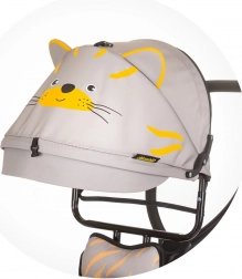 Trojkolka je vybavená zábavným dizajnom v štýle tigra, vrátane detailov uší na baldachýne.