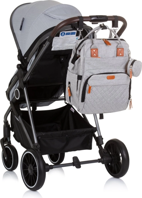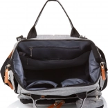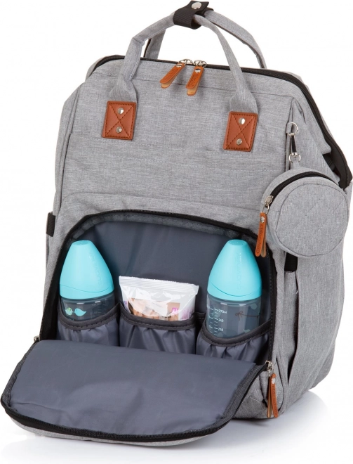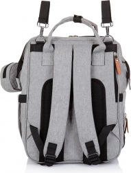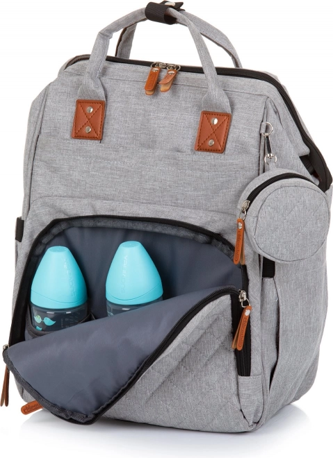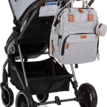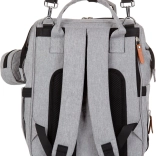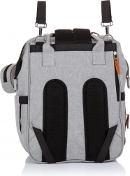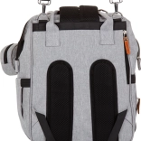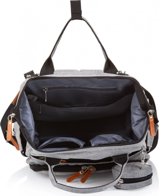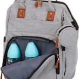 Štýlový prebaľovací batoh v sivej farbe kombinuje moderný dizajn a maximálnu funkčnosť. Vďaka množstvu vreciek, vrátane troch vnútorných termo vreciek na fľaše, rýchlo nájdete všetko dôležité – od plienok po desiatu. Batoh ľahko pripevníte na rukoväť kočíka a vďaka polstrovaným popruhom sa pohodlne nosí aj na chrbte.