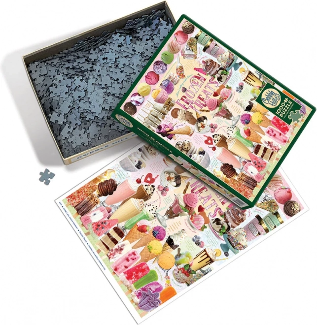 Ponorte sa do sladkého sveta motívu Mrazené dobroty a užite si kvalitné spracovanie puzzle COBBLE HILL. Špeciálna, nepravidelná raznica nenasleduje klasickú mriežku, takže rohy a hrany dielikov nie sú vždy v jednej osi. To zvyšuje náročnosť skladania aj výsledný zážitok.