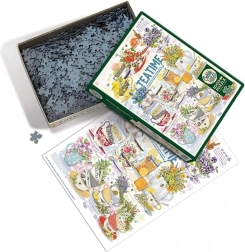 Puzzle COBBLE HILL Čas na čaj poteší všetkých milovníkov detailných ilustrácií a poctivého skladania. Vďaka nepravidelnej raznici nie sú rohy a hrany dielikov vždy v jednej osi, čo prináša náročnejšiu a zábavnejšiu výzvu než pri klasických mriežkových puzzle.