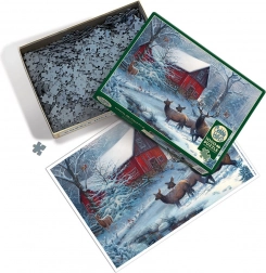 Užite si relax s kvalitným obrazom Zimné kúzlo od značky COBBLE HILL. Tieto puzzle majú neštandardné, unikátne tvary dielikov, ktoré prinášajú vyššiu náročnosť a zábavnú výzvu. Súčasťou balenia je predloha s rozmermi 31,6 × 22,9 cm a po zložení získate formát cca 67,6 × 48,9 cm.