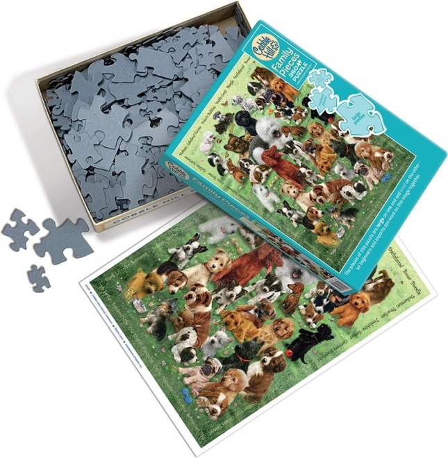 Rodinné puzzle s motívom šteniat prináša šikovné rozdelenie na veľké, stredné a malé dieliky, vďaka ktorému si každý užije svoju časť skladania. Menšie deti sa pustia do časti s veľkými dielikmi, staršie deti a dospelí zase do jemnejších detailov s menšími dielikmi.