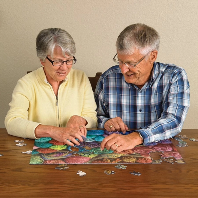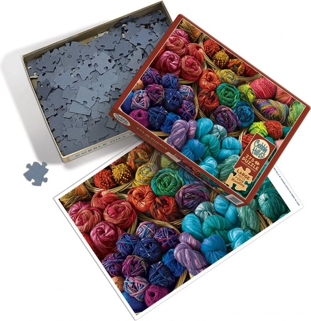 Puzzle COBBLE HILL Túžba po priadzi XL je navrhnuté pre pohodlné skladanie bez kompromisov na zábave. Vďaka extra veľkým dielikom sa dobre držia, ľahko sa s nimi manipuluje a zároveň pomáhajú rozvíjať jemnú motoriku. Nestandardná raznica s unikátnymi tvarmi zvyšuje atraktivitu a prináša pútavejší zážitok než bežná mriežková raznica.