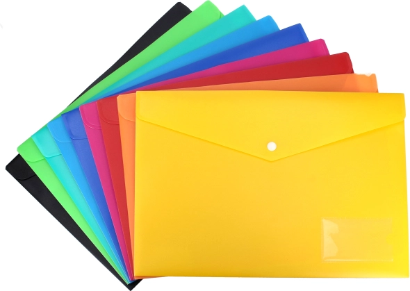 Tento obal je vyrobený z mäkkého plastu, čo zaisťuje jeho ľahkú umývateľnosť a dlhú životnosť. Praktické zapínanie na gombík udrží všetky vaše dokumenty bezpečne vo vnútri a zabráni ich strate.