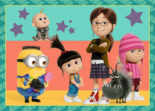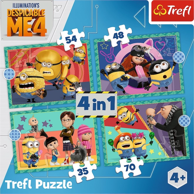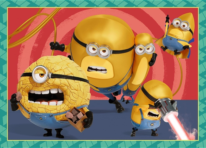 - 4 samostatné puzzle s motívmi bláznivých Mimoňov