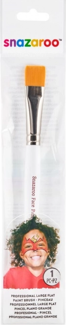 Profesionálny štetec SNAZAROO na maľovanie na tvár a telo. Vďaka plochému tvaru je ideálny na silnejšie ťahy a rýchle vyplňovanie väčších plôch. Je vyrobený z mäkkých syntetických vlákien, ktoré sú odolné, príjemné na pokožke a vhodné pre začiatočníkov aj profesionálov.