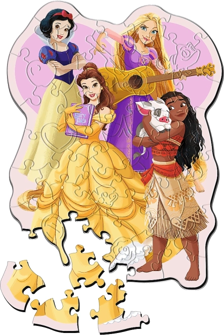 Drevené puzzle DISNEY Princezné potešia každého, kto hľadá krásne a zmysluplné skladanie. Nepravidelné tvary dielikov a skryté figúrky s princeznovskými motívmi prinášajú hravú výzvu, ktorá zabaví deti aj dospelých. Každý dielik je pevný, farebne stály a na rube doplnený elegantným vzorom pre ešte väčší estetický zážitok.