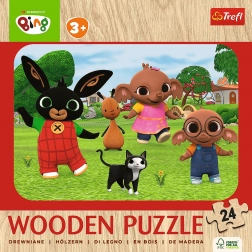 Bezpečnosť je na prvom mieste – zaoblené hrany chránia pri hraní a ekologické balenie úplne bez plastu poteší aj rodičov. Dekoratívny vzor na rubovej strane dodáva puzzlom pôvab a robí z nich pekný darček pre malých fanúšikov BING.