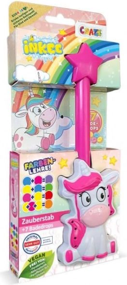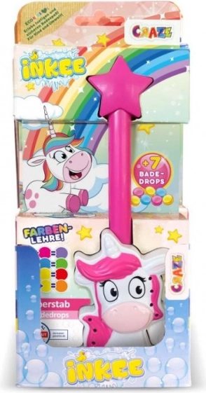 Čarovná palička INKEE v roztomilom dizajne jednorožca prináša deťom do vane veľa radosti a fantázie. Jednoducho vložte šumivú kvapku do paličky, ponorte do vody a sledujte, ako sa uvoľňuje farebná vôňa jahôd a zanecháva magickú stopu.
