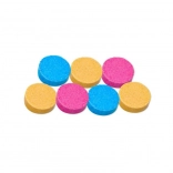 Balenie obsahuje spolu 7 šumivých kvapiek x 3 g vo farbách purpurová, žltá a modrá. Vďaka kombinácii troch základných farieb deti ľahko vytvoria až 7 odtieňov – napríklad oranžovú, zelenú, červenú a fialovú. Hračka podporuje kreativitu, učenie farebnému miešaniu a spríjemní každý kúpeľný rituál.