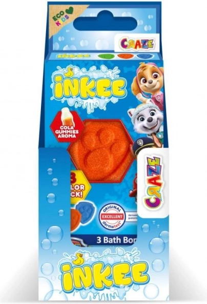 Šumivé bomby Inkee Paw Patrol premenia kúpeľ na farebnú a voňavú hru. Každá mini bomba postupne šumí, sfarbí vodu a uvoľní jemnú vôňu, ktorú si deti obľúbia. Vďaka pridanému mandľovému oleju pomáhajú zvláčniť a zjemniť pokožku.