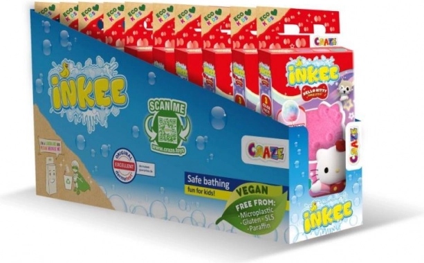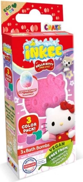 Objavte čaro kúpania s mini balením Inkee Hello Kitty. Tri malé šumivé bomby (3×15 g) premenia vodu na hravý, farebný kúpeľ s jemnou vôňou cukrovej vaty. Štýlové balenie s okienkom poteší deti aj fanúšikov HELLO KITTY a skvele sa hodí ako drobný darček.