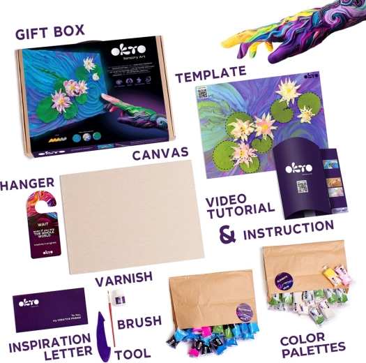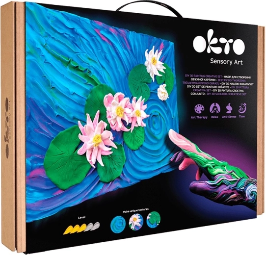Objavte radosť z tvorenia s výtvarnou sadou Okto „Lekná“ vo formáte 30 × 40 cm. V balení nájdete všetko potrebné pre vlastné umelecké dielo: prírodné plátno, modelovacie hmoty, akrylátový vodou riediteľný lak, štetec, drevený tvarovací nástroj a zrozumiteľný návod.