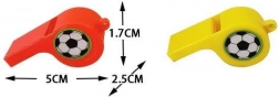 Táto plastová píšťalka je ideálnym doplnkom pre športové akcie a voľnočasové aktivity. S dĺžkou 5 cm je ľahko prenosná a výrazné farby sú dobre viditeľné.
