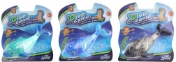 Veselý vodný delfínik na potápanie do vody o veľkosti cca 14 cm. Po vložení do vody delfínik svieti a dá sa nájsť a vyloviť. Prevádzka na 3 gombíkové batérie AG13 (súčasť balenia). Vhodné na spestrenie plaveckého a potápačského výcviku alebo na využitie v domácom bazéne (pod dohľadom dospelého). Rozmery balenia cca 19 × 20 × 8 cm. Vek 3+