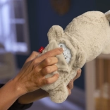 Hebký plyš s vyšívanými detailmi je príjemný na dotyk a hračku možno ľahko udržiavať v čistote (pranie podľa pokynov výrobcu).