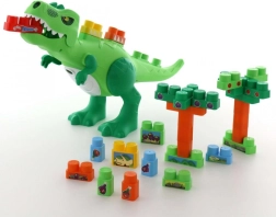 Na chrbte a chvoste dinosaura sú miesta na upevnenie kociek, takže dieťa môže samo navrhnúť, ako dinosaurus vyzerá. Jednoduché vybratie kociek zo spodnej časti umožňuje vytváranie nového prostredia pre dinosaurusa.