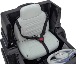 Pre maximálne bezpečie rodičia ocenia diaľkové ovládanie 2,4 GHz s tromi rýchlosťami a núdzovým tlačidlom STOP. Autíčko poteší bohatou svetelnou výbavou – predné a zadné LED, bočné podsvietenie karosérie aj podsvietené zadné rezervné koleso. Interiér s čalúneným sedadlom z eko kože, bezpečnostnými pásmi a multimediálnym panelom (MP3, USB, Bluetooth, AUX) prináša komfort a zábavu.