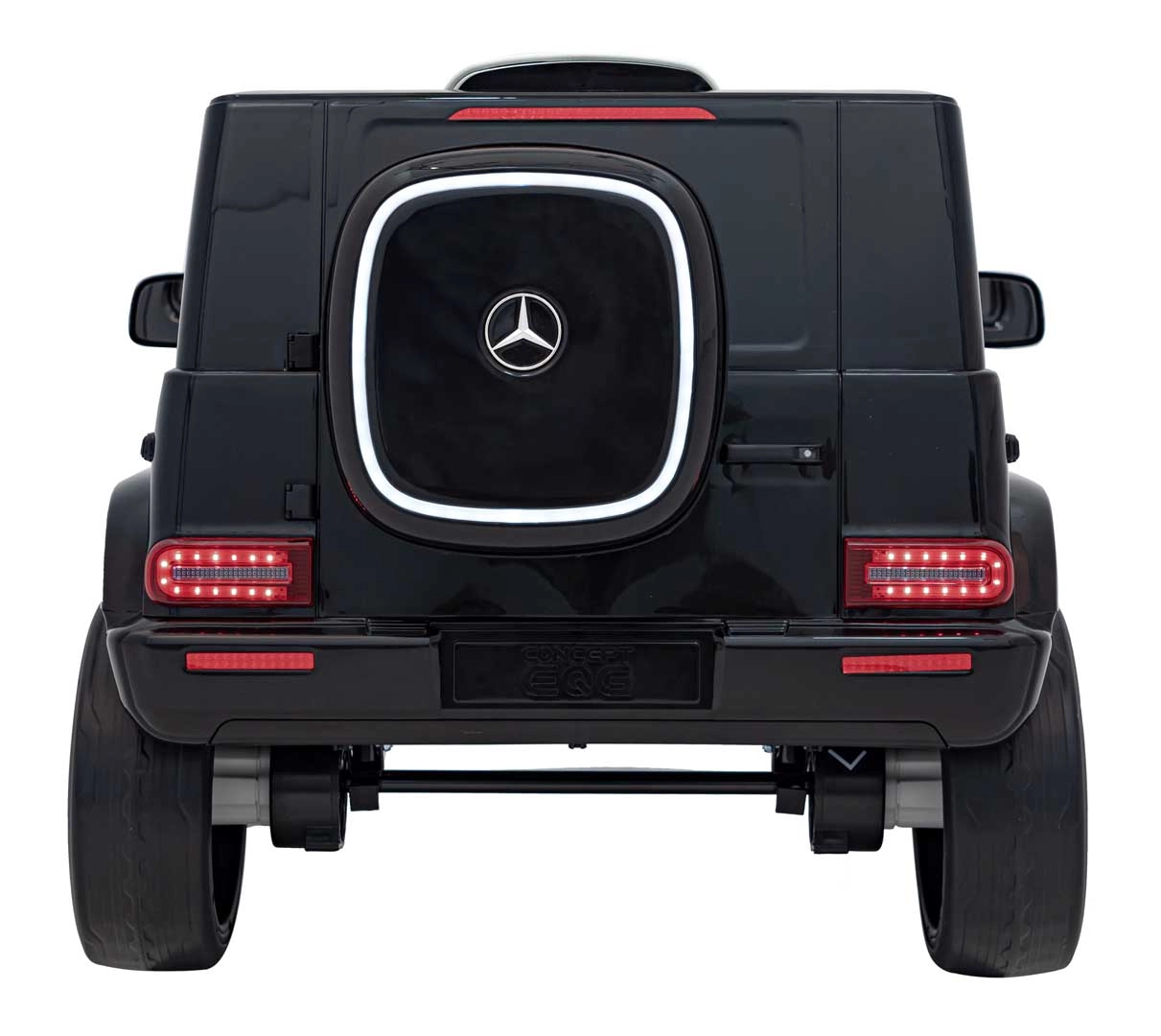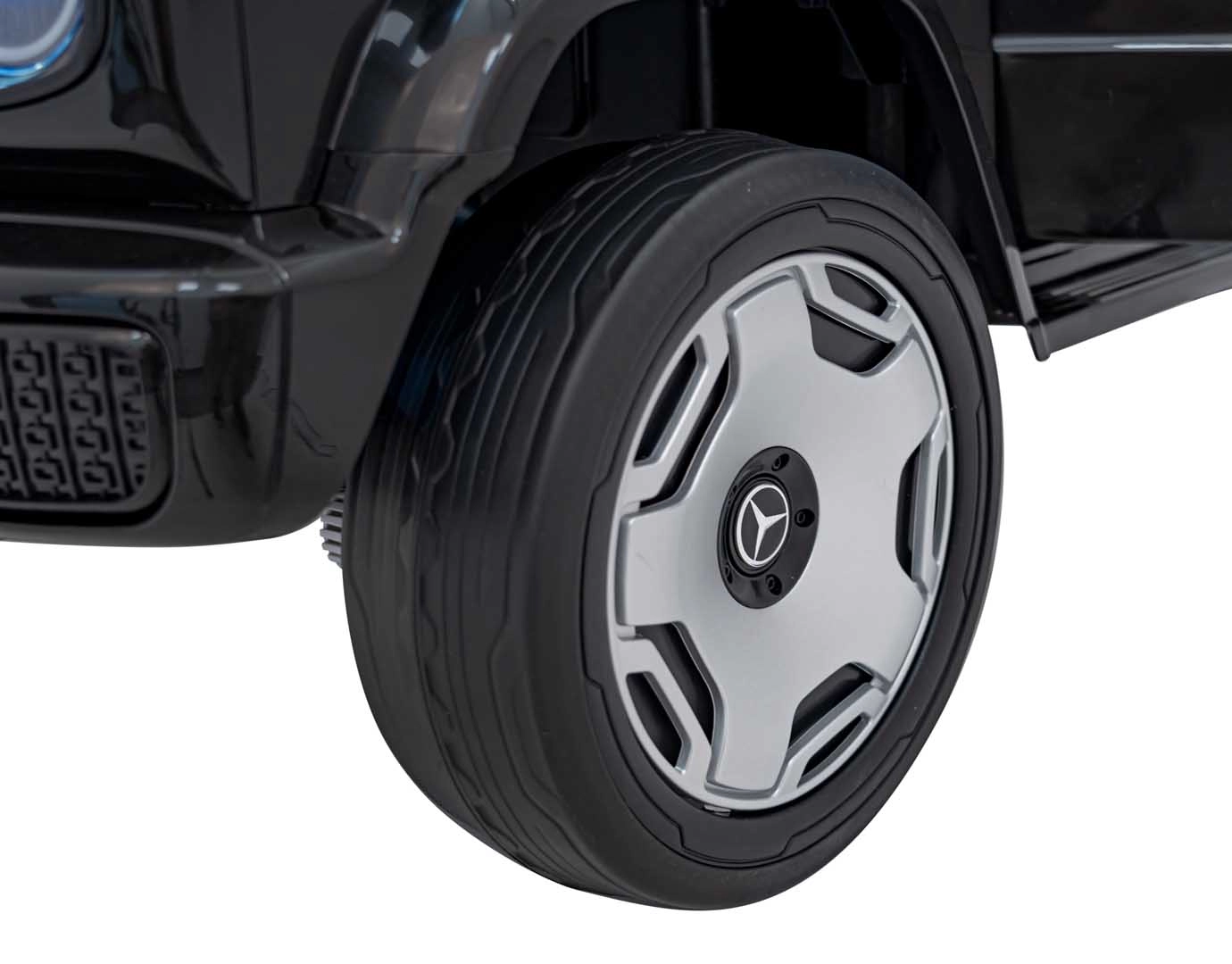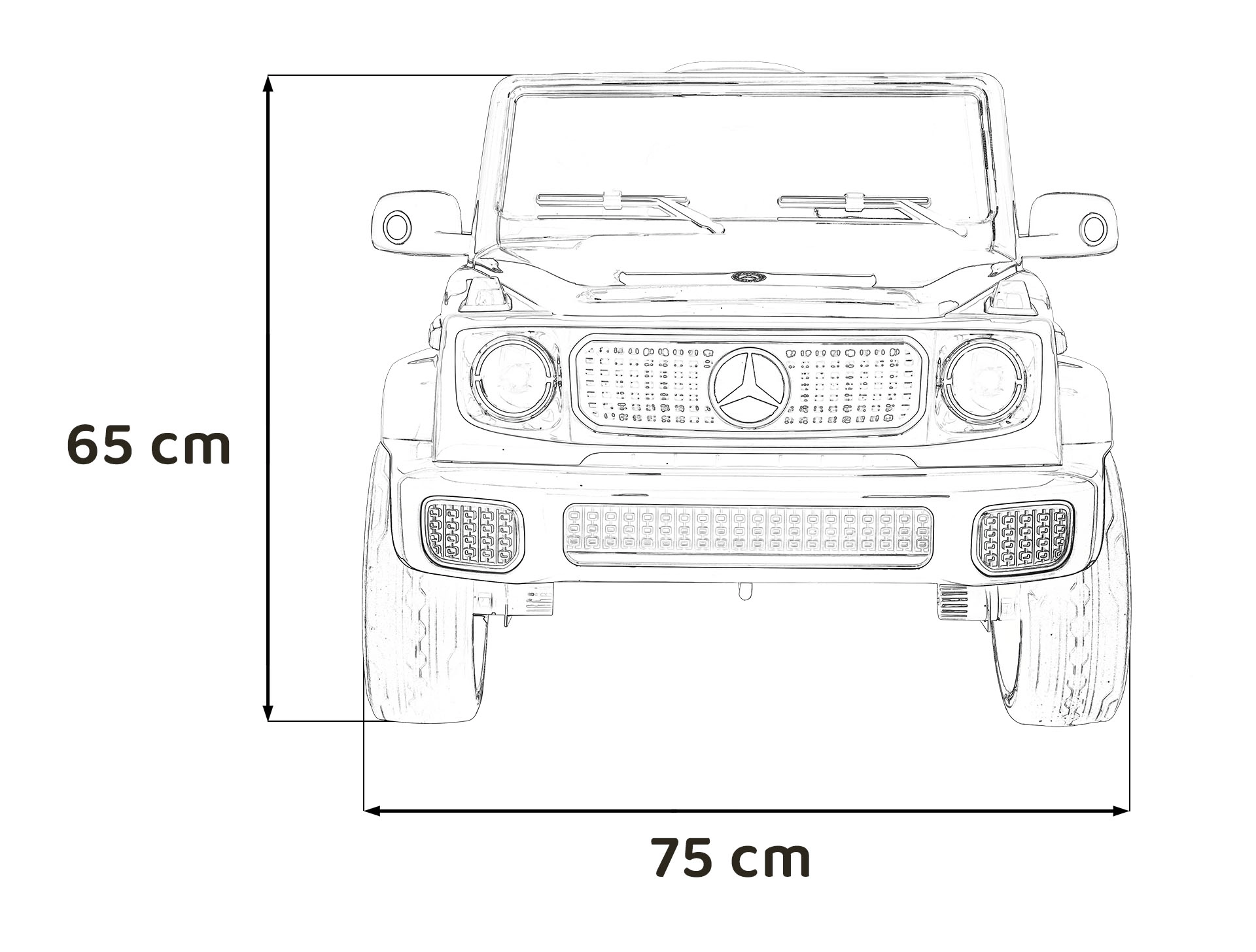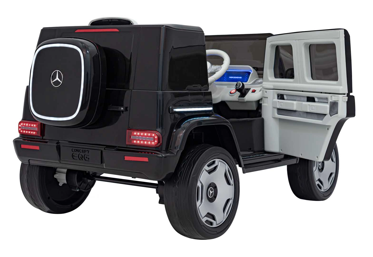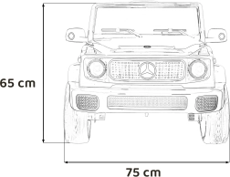 Doprajte deťom autentický zážitok z jazdy s elektrickým autíčkom MERCEDES‑BENZ EQG. Dva výkonné pohony (2×20 W + 2×45 W) a plynulý rozjazd zaistia komfortnú jazdu vpred i vzad, odpruženie zadnej nápravy poskytne stabilitu v teréne a veľké mäkké EVA kolesá (26×10 cm) výborne tlmia nerovnosti.