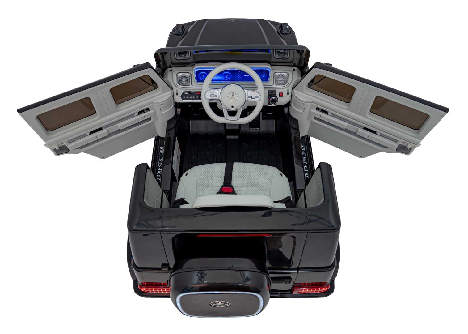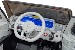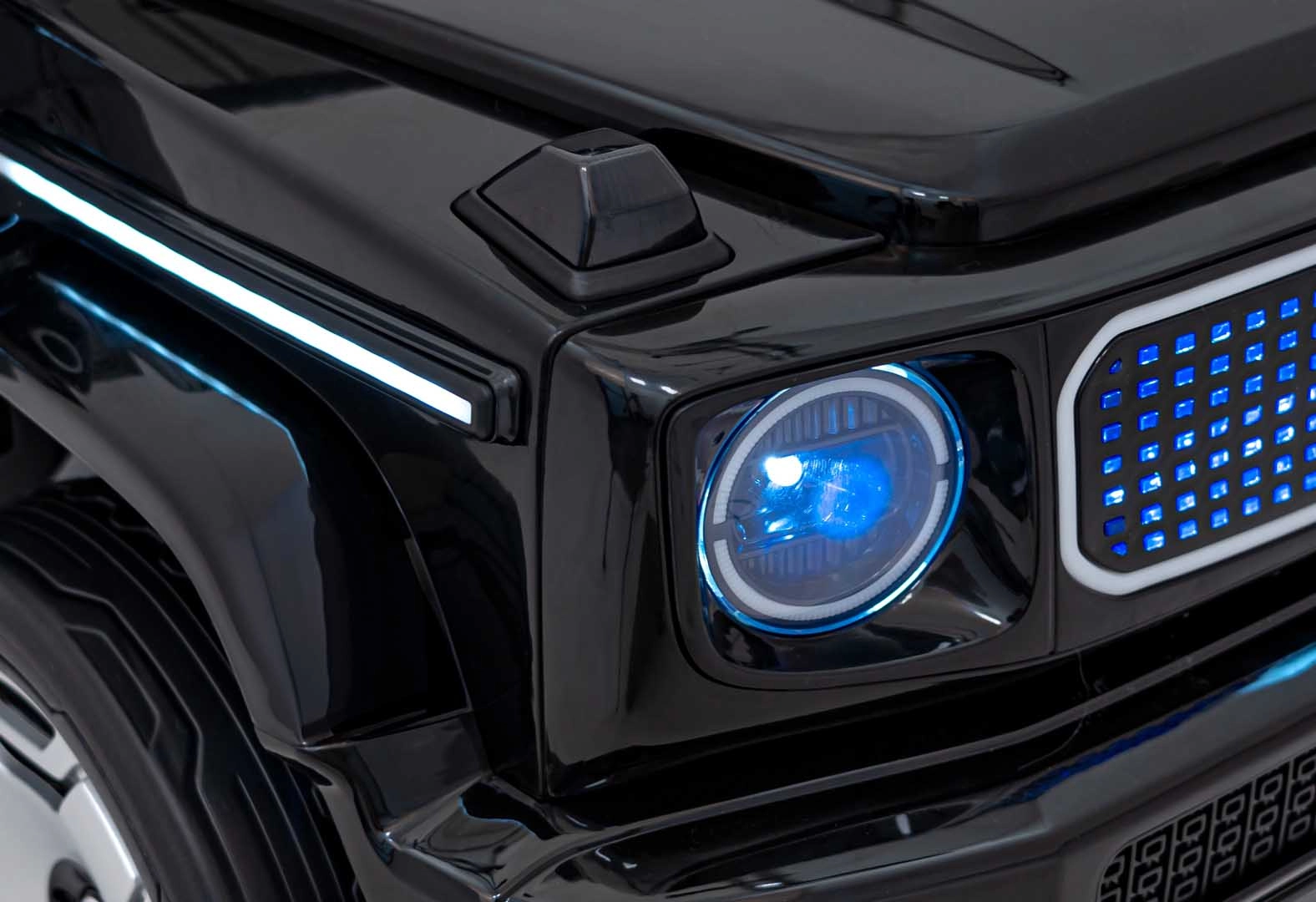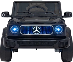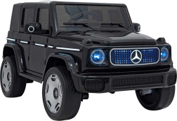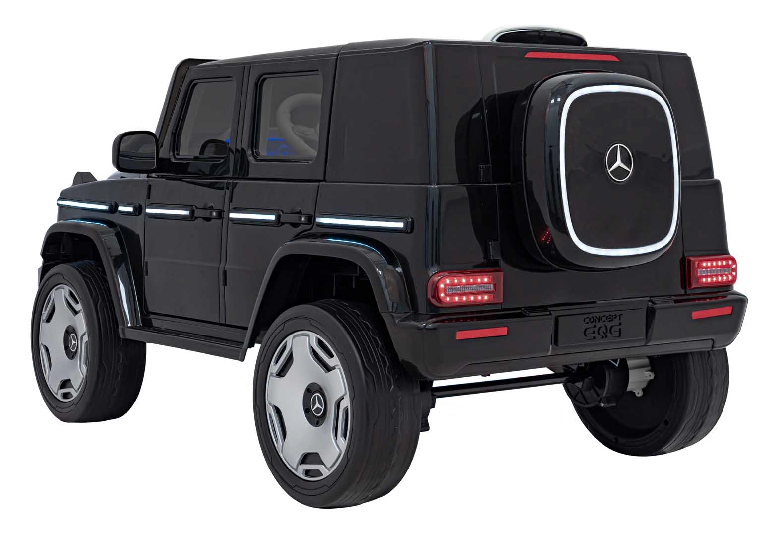Doprajte deťom autentický zážitok z jazdy s elektrickým autíčkom MERCEDES‑BENZ EQG. Dva výkonné pohony (2×20 W + 2×45 W) a plynulý rozjazd zaistia komfortnú jazdu vpred i vzad, odpruženie zadnej nápravy poskytne stabilitu v teréne a veľké mäkké EVA kolesá (26×10 cm) výborne tlmia nerovnosti.