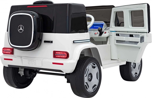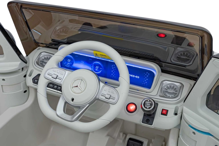 Elektrické autíčko MERCEDES‑BENZ EQG je ideálnou voľbou pre malých vodičov, ktorí milujú kombináciu luxusného vzhľadu a pohodlnej, bezpečnej jazdy. Reálne detaily, otváracie dvere a podsvietené zadné „rezervné“ koleso vytvárajú autentický zážitok z jazdy. Silná batéria 12 V 9 Ah a viac motorov zaisťujú plynulý záber aj pri dlhších vychádzkach.
