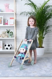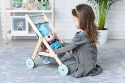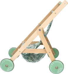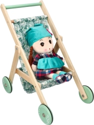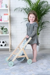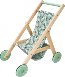Ľahký drevený kočík pre bábiky prepája nadčasový prírodný materiál s hravým textilným sedadlom v listovom dizajne. Hladké madlá a tiché kolieska zabezpečujú pohodlné tlačenie po byte, zatiaľ čo odolná konštrukcia ponúka istotu a stabilitu pri hre.