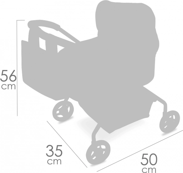 Rozmery 50 × 35 × 56 cm a ľahká konštrukcia sú ideálne pre malé deti. Vnútorná vanička 40 × 23 cm pojme väčšinu bábik.