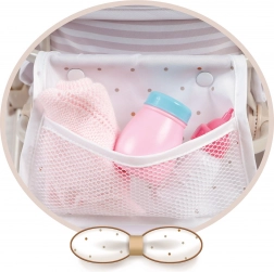 Vďaka polohovateľným operadlám, otočným predným kolieskam a nastaviteľnej rukoväti 41–72 cm je manipulácia jednoduchá aj pre menšie deti. Sieťované zadné vrecko a spodný košík ponúknu dosť miesta na drobnosti, zatiaľ čo 3-bodové pásy udržia bábiky bezpečne na mieste. Skladacia konštrukcia uľahčí prenášanie aj uloženie doma.