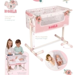 Roztomilá novorodenecká postieľka pre bábiky zo série KOALA prináša funkciu spoločného spania, takže bábika môže byť bezpečne a pohodlne hneď vedľa „mamičky“. Má sklápaciu bočnicu so sieťkou pre lepší dohľad, nastaviteľnú výšku v 3 úrovniach a pohyblivé nohy pre jednoduché prisunutie k posteli. Ľahká, stabilná a s jemným kvetinovým dizajnom v ružovo-bielom prevedení.