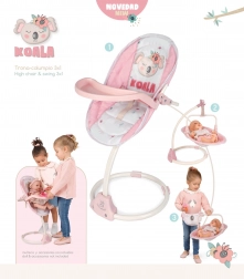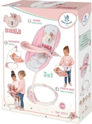 Štýlová multifunkčná stolička a hojdačka pre bábiky 3 v 1 z kolekcie KOALA prináša deťom realistickú starostlivosť o bábätko. Vďaka chytrému systému upevnenia sa ľahko premení na jedálenskú stoličku, hojdačku alebo samostatné nosítko. Ponúka odnímateľné obojstranné sedadlo s bezpečnostnými popruhmi, plastový pultík na kŕmenie a ľahký, stabilný dizajn pre pohodlnú hru. Ideálne pre deti od 3 rokov.