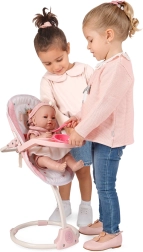 Vďaka precíznemu spracovaniu a ľahkej manipulácii je hra prirodzená a bezpečná. Sedadlo s bezpečnostnými popruhmi udrží bábiku na mieste, pultík uľahčí kŕmenie a stabilná konštrukcia z kovu, plastu a textilu zaistí dlhú životnosť.