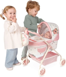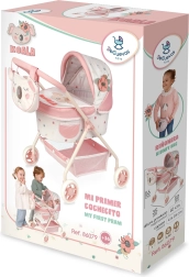 Objavte nežný kočík pre bábiky z kolekcie KOALA s motívom spiaceho medvedíka. Kombinácia bielej s drobnou kvetinovou potlačou a lososovo ružovej farby vytvára štýlový španielsky dizajn, ktorý zaujme na prvý pohľad. Kočík je vďaka nízkej rukoväti, stabilnej konštrukcii a nízkej hmotnosti ideálny aj pre úplne malé slečny.