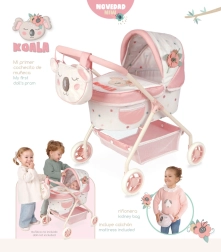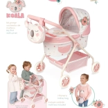 Roztomilý detský kočík pre bábiky z kolekcie KOALA poteší malé mamičky jemným dizajnom, nízkou rukoväťou a ľahkou, stabilnou konštrukciou. Súčasťou je odnímateľná taška s možnosťou nosenia ako ľadvinka, kryt vaničky, matrac a praktický úložný košík. Ideálny pre deti od 3 rokov.