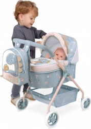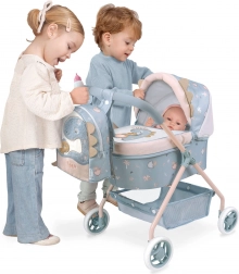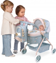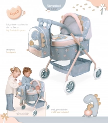 Objavte prvý kočík pre bábiky navrhnutý pre najmenšie deti. Vďaka nízkemu držadlu, ľahkej konštrukcii a plynulému ovládaniu sa s ním ľahko jazdí doma aj vonku. Dizajn kolekcie COCO v jemnej sivomodrej s pieskovými a ružovými akcentmi dopĺňa hravý motív dinosaurej maminky s mláďatkom.