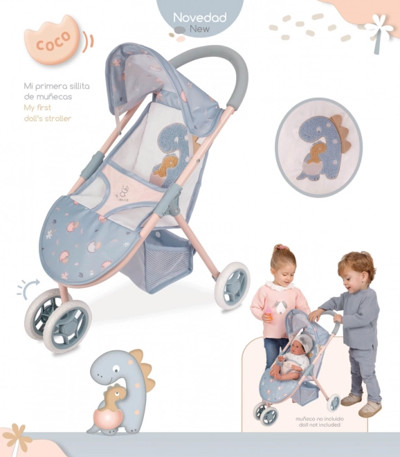 Objavte rozkošný športový kočík pre bábiky s motívom dinosaučej maminky a mláďatka z kolekcie COCO 2024. Kombinuje španielsky dizajn, kvalitné spracovanie a nízku hmotnosť pre pohodlné ovládanie aj tými najmenšími. Vďaka robustnej konštrukcii z kovu, plastu a textilu vydrží každodenné hranie.