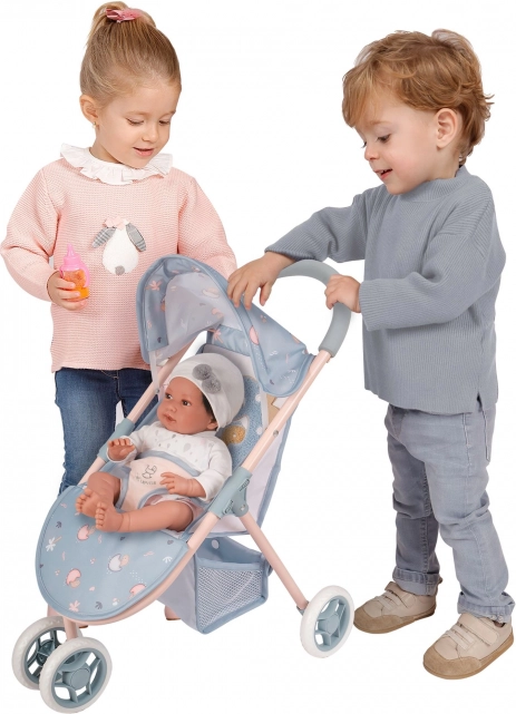 Otočné predné dvojkoleso uľahčuje zatáčanie, spodný košík ponúkne praktický úložný priestor a trojbodový pás bezpečne zaistí bábiku až do veľkosti 46 cm. Kompaktné rozmery 55 × 48 × 33 cm (v × h × š) zabezpečujú jednoduché prenášanie aj skladovanie.