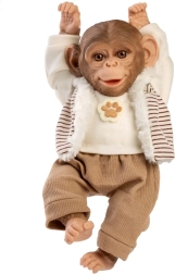 Táto realisticky spracovaná opička bábätko prináša deťom veľa radosti a fantázie pri hre. Vďaka mäkkému látkovému telíčku sa príjemne mojká, zatiaľ čo vinylová hlavička a končatiny s krásnymi detailmi vyzerajú ako živé. Opička je polohovateľná – ľahko ju posadíte alebo zavesíte za ruky či nohy, takže sa stane obľúbenou spoločníčkou aj dekoráciou do detskej izbičky.