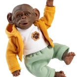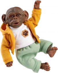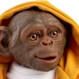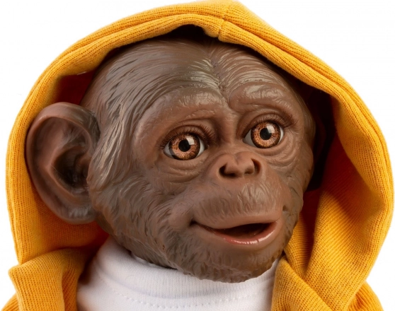Opičiatko je oblečené v štýlovom žltom svetri a s realistickými črtami tváre, ktoré pridávajú dojem skutočnej opice.