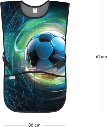 Táto detská zástera je dokonalým doplnkom pre každé dieťa, ktoré miluje tvoriť. S dynamickým futbalovým dizajnom v modro-zelených tónoch ponúka nielen estetiku, ale aj praktickosť. Zástera je vybavená dvoma vreckami v spodnej časti, ktoré sú ideálne na ukladanie výtvarných pomôcok či pracovných nástrojov.