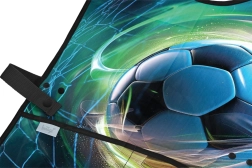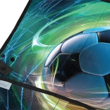 Svieži a pôsobivý dizajn s futbalovou loptou a modro-zelenými tónmi.