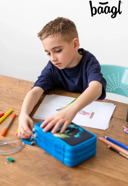 Objavte ideálne riešenie pre všetky vaše školské potreby s týmto veľkým trojposchodovým peračníkom od značky Baagl. Jeho pevná konštrukcia so zosilnenou chrbticou zaisťuje dlhú životnosť a jednoduché používanie. Kvalitný zips systému YKK zaručuje bezpečné uloženie vašich ceruziek, pier a ďalšieho príslušenstva.